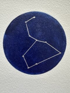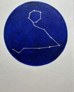 Kaart sterrenbeeld leeuw – zilver op donkerblauw – 10 x 15 cm binnenzijde blanco – olieverf op linnen papier.